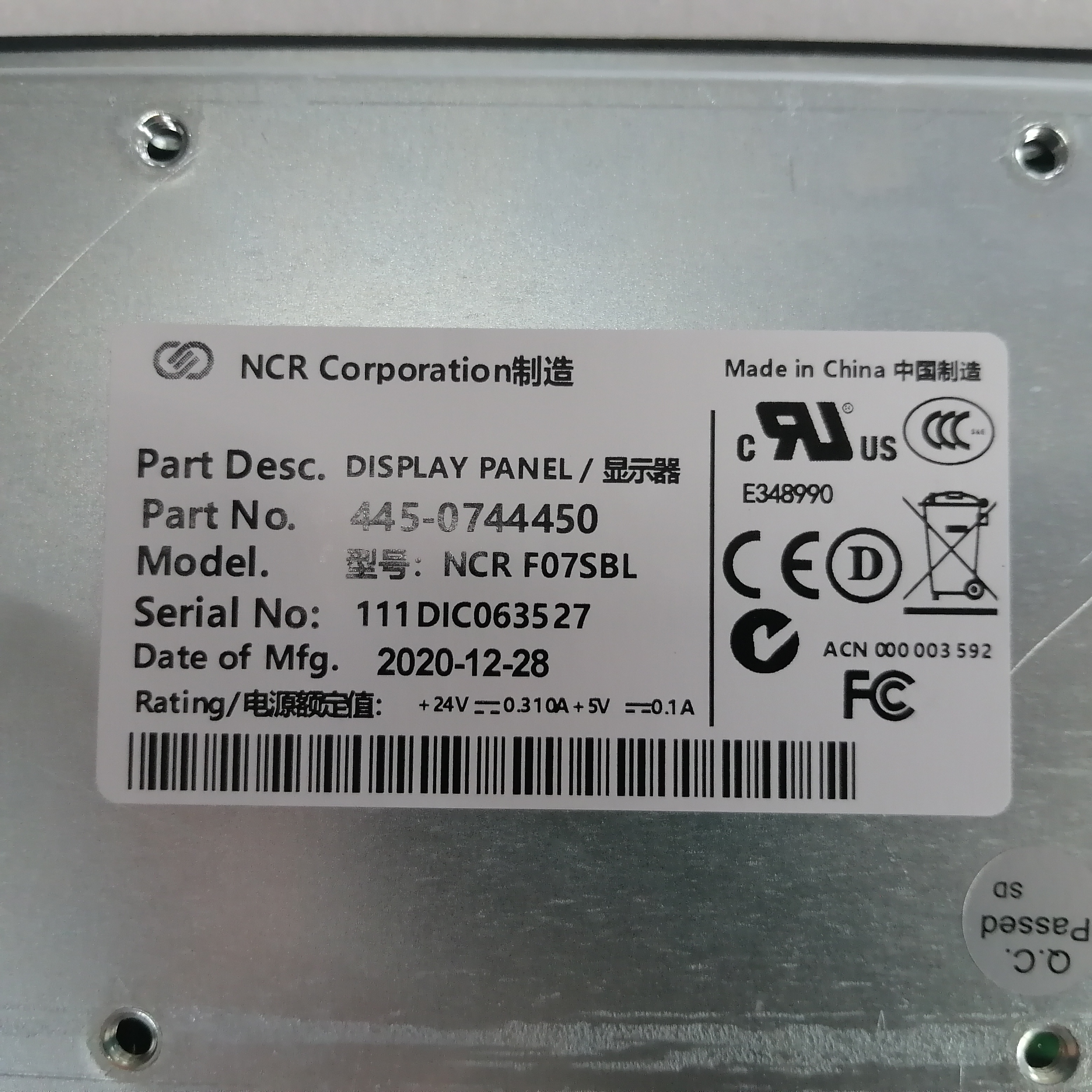 PANEL DE PANTALLA NCR FO7SBL